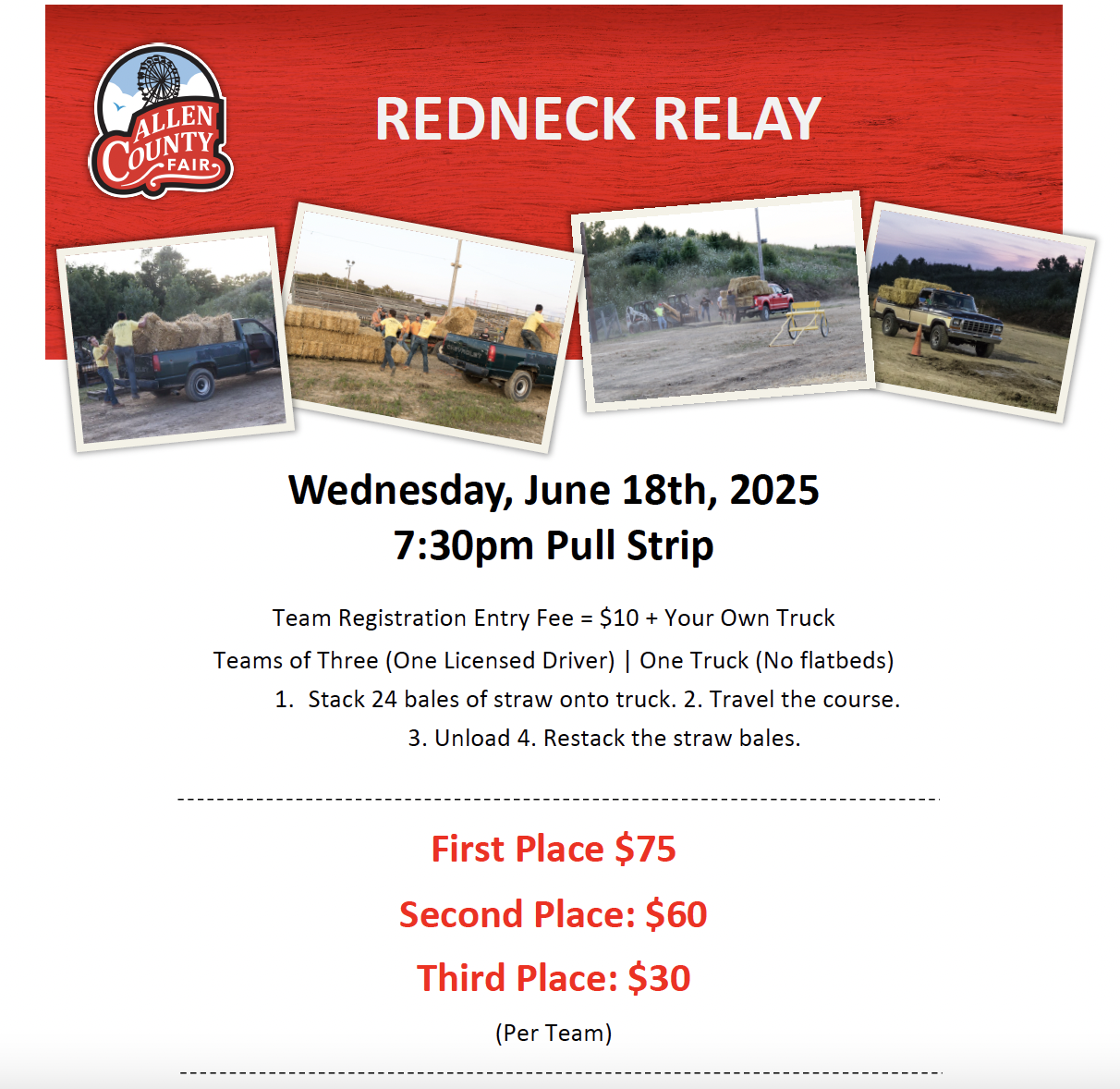 Note: After 2 pm, gate admission for the Allen County Fair is $10 per person Tuesday-Friday and $10 after noon on Saturday. Admission is $5 on Sunday, with kids five and under free at the main gate—parking is always free.